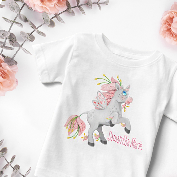 Pretty Rearing Flower Fairy Unicorn with Orchids Baby T-Shirt