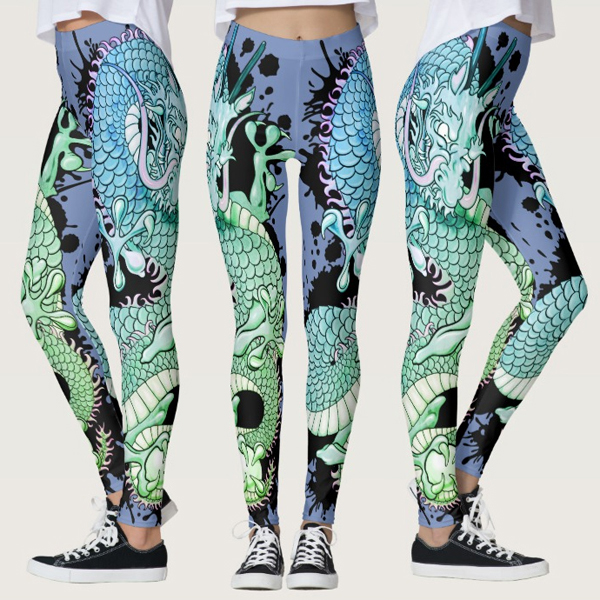 Cornflower blue and Green Splash Dragon Tattoo Leggings