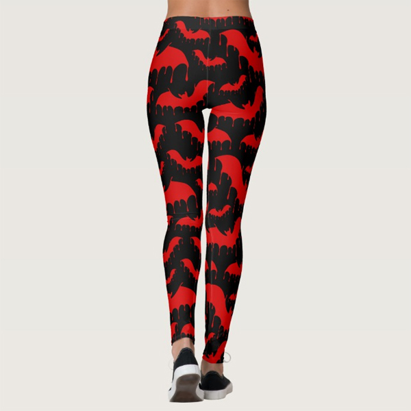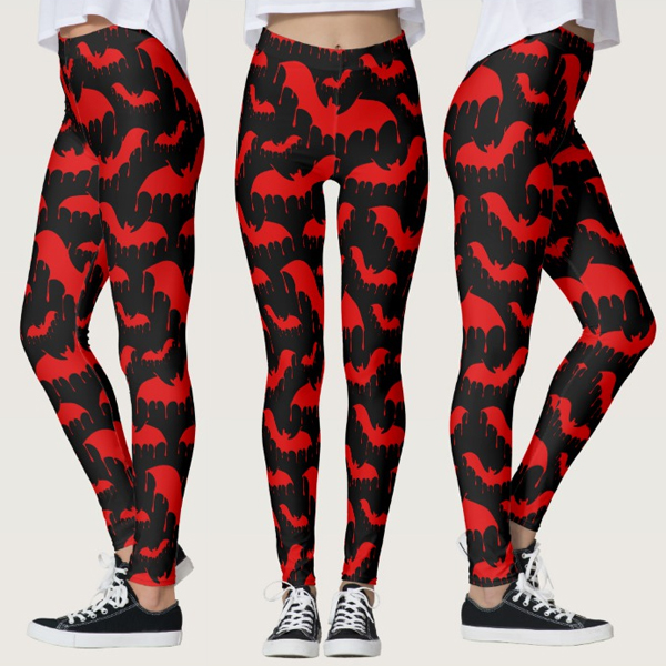 Red bats Nu Goth Gothic alternative leggings. Alternative bats pattern on black.