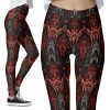 Gothic Red Roses Ravens Leggings | Alternative Floral Mystical Pattern.