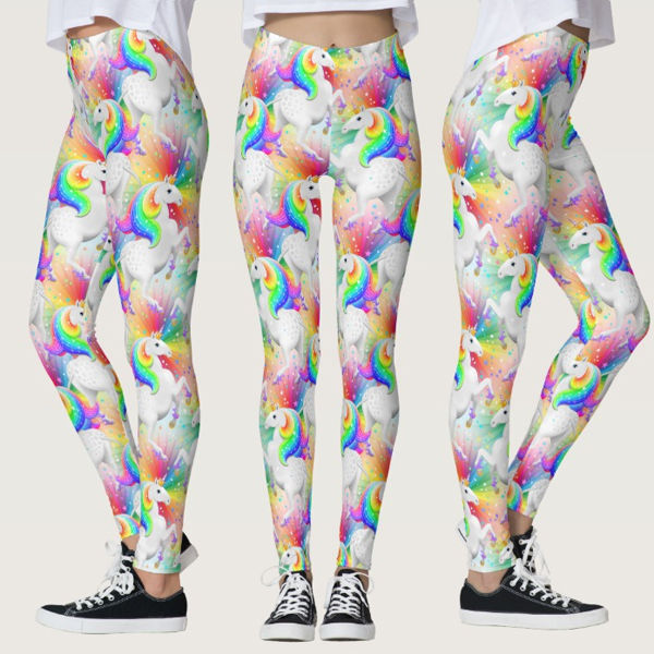 Amazing and bright leggings adorned with colourful unicorns and stars