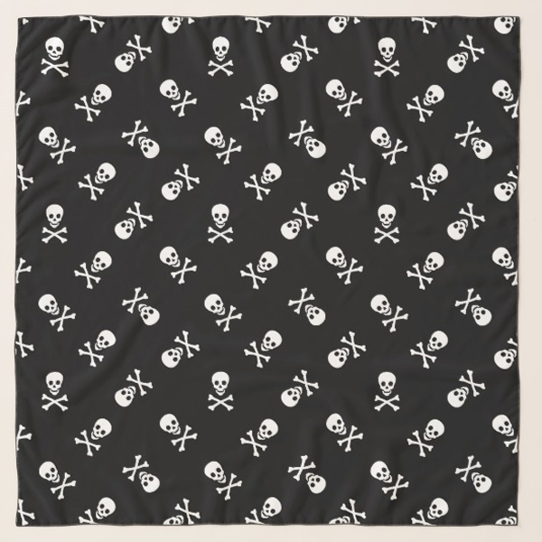 Rockabilly Punky Biker Skulls Emoji Tattoo Design Scarf in Black with White Skull and Crossbones Emojis.
