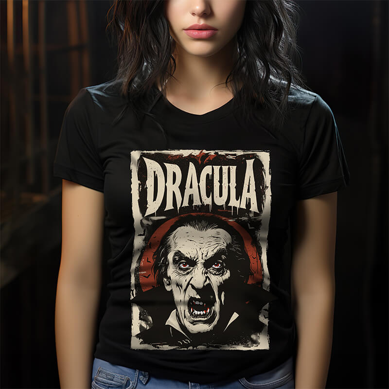 Indulge in the haunting charm of this Dracula T-Shirt, with Halloween Gothic Vibes.