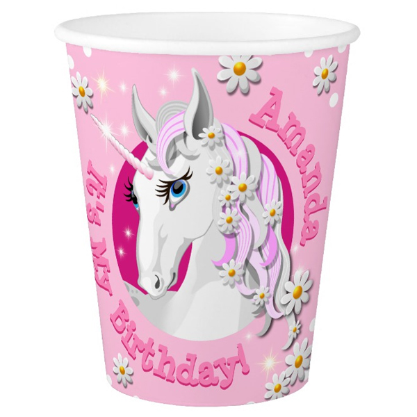 Pretty Pink Girls Personalised Unicorn Party Paper Cup