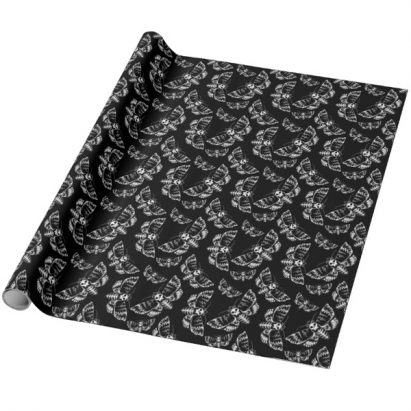 Black and Grey Deaths Head Hawk Moth Skull Gothic Wrapping Paper